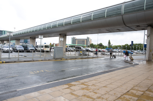 Follow the exit sights to the main concourse outside the arrival area (there will be a rank of black cabs waiting, they are very expensive)[2]